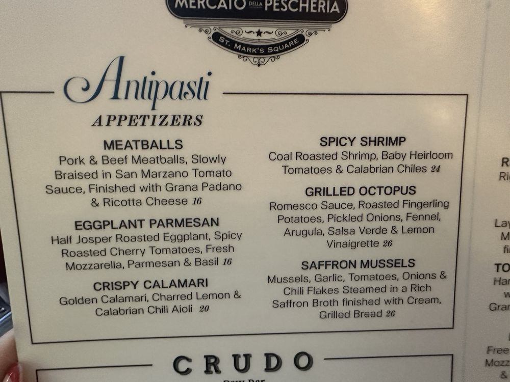 Mercato Della Pescheria Las Vegas offers a diverse menu with options for vegans, vegetarians, and seafood enthusiasts. Located in a convenient spot on the Las Vegas Strip, this restaurant provides a range of amenities including delivery, outdoor seating, and a full bar. Customers praise the friendly and attentive staff, as well as the delicious dishes such as tuna tartar, mushroom risotto, and tableside tiramisu. The ambiance is described as lovely and the service is exceptional, with some diners highlighting specific waitstaff members for their excellent service. The overall experience at Mercato Della Pescheria Las Vegas is highly recommended for those looking for a memorable Italian dining experience in the heart of Las Vegas.